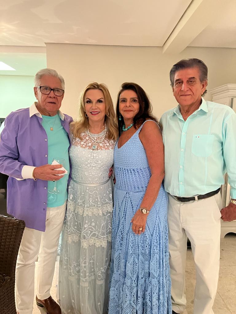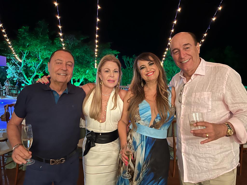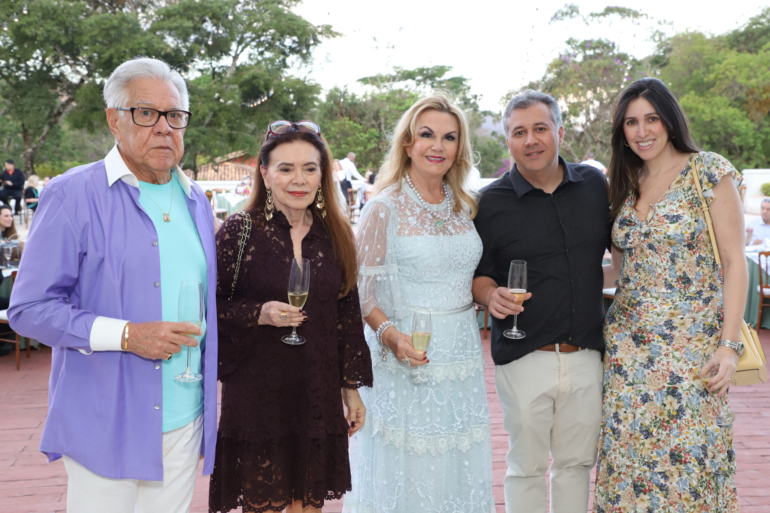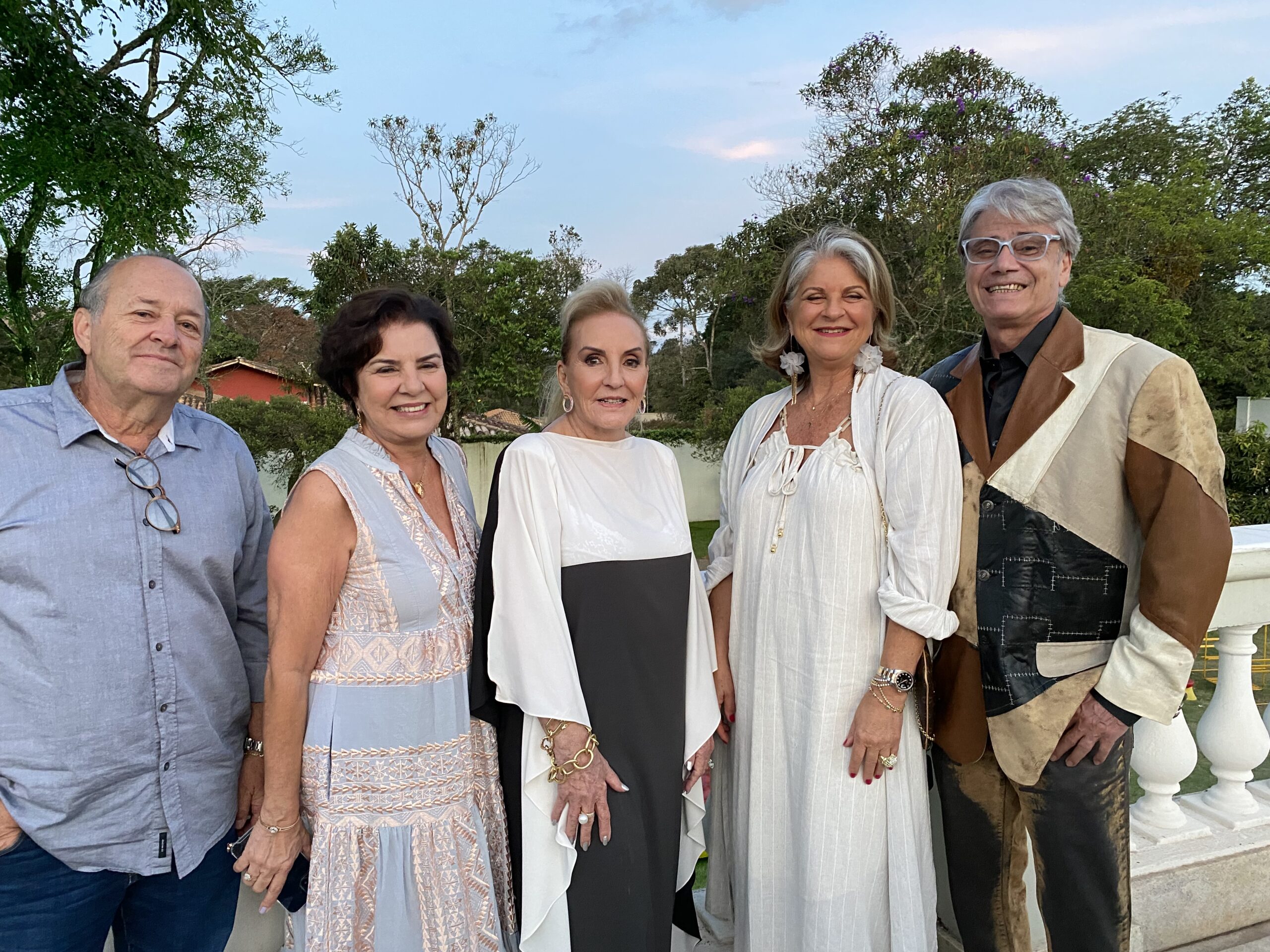Marta Maria de Castro Batista Ramos não deixou de comemorar seu aniversário deste ano, apesar da data de 2 de Outubro ter caído no domingo do primeiro turno das eleições. Então, transferiu a festa para duas semanas depois, pois Martinha acha que é uma excelente ocasião de rever seus muitos amigos. Foi um sábado de sol, na casa de campo de seu filho Betinho, no Condomínio Miguelão, nas redondezas de Beagá/Nova Lima. Marcou a festa para as 16h quando o sol já está descendo para a linha do belo horizonte que se avista nos jardins da casa e o céu vai tomando tons de rosa, as aves vão cruzando o céu retornando para as árvores em volta do pátio, onde foram colocadas as mesas, e este cenário encantou seus convidados, que consideraram a tarde maravilhosa e perfeita. A decoração de centenas de rosas e vários tipos de flôres, formando enormes arranjos multicoloridos em jarros de cristal combinando com a imponência da casa estilo aristocrático inglês. Aliás, o vestido da anfitriã combinava com o estilo inglês, pois o encomendou direto da Inglaterra da premiada estilista britânica Jenny Packham, responsável pelo guarda-roupa da série Bridgerton, um modelo fin-desiècle num tom de azul pastel. O jantar foi servido assim que a noite chegou, o bar de drinques funcionou todo o tempo, e a banda do cantor João Mariz animou a festa com um repertório de músicas consagradas, principalmente sertanejas, o que levou os convidados para a pista de dança. Os vinhos servidos (alguns premiados) foram todos os produzidos pela família da Martinha, nos vinhedos chilenos de seu cunhado Juan Coderch e sua irmã Cecilia Batista Coderch. As presenças podem ser conferidas nas fotos.