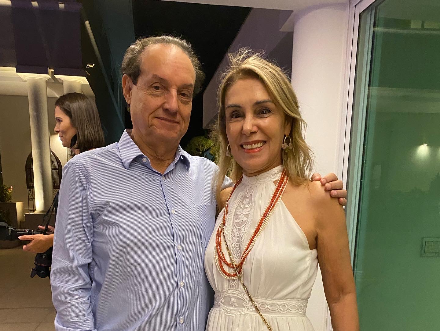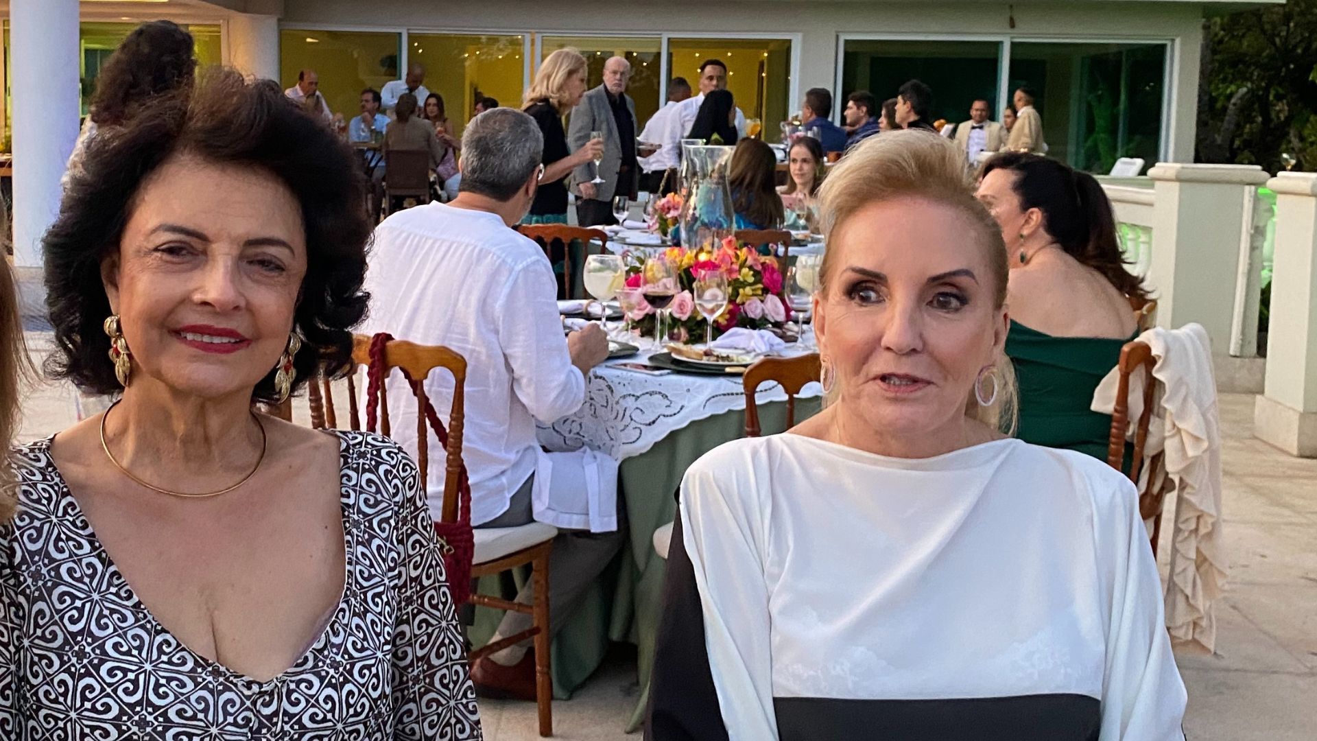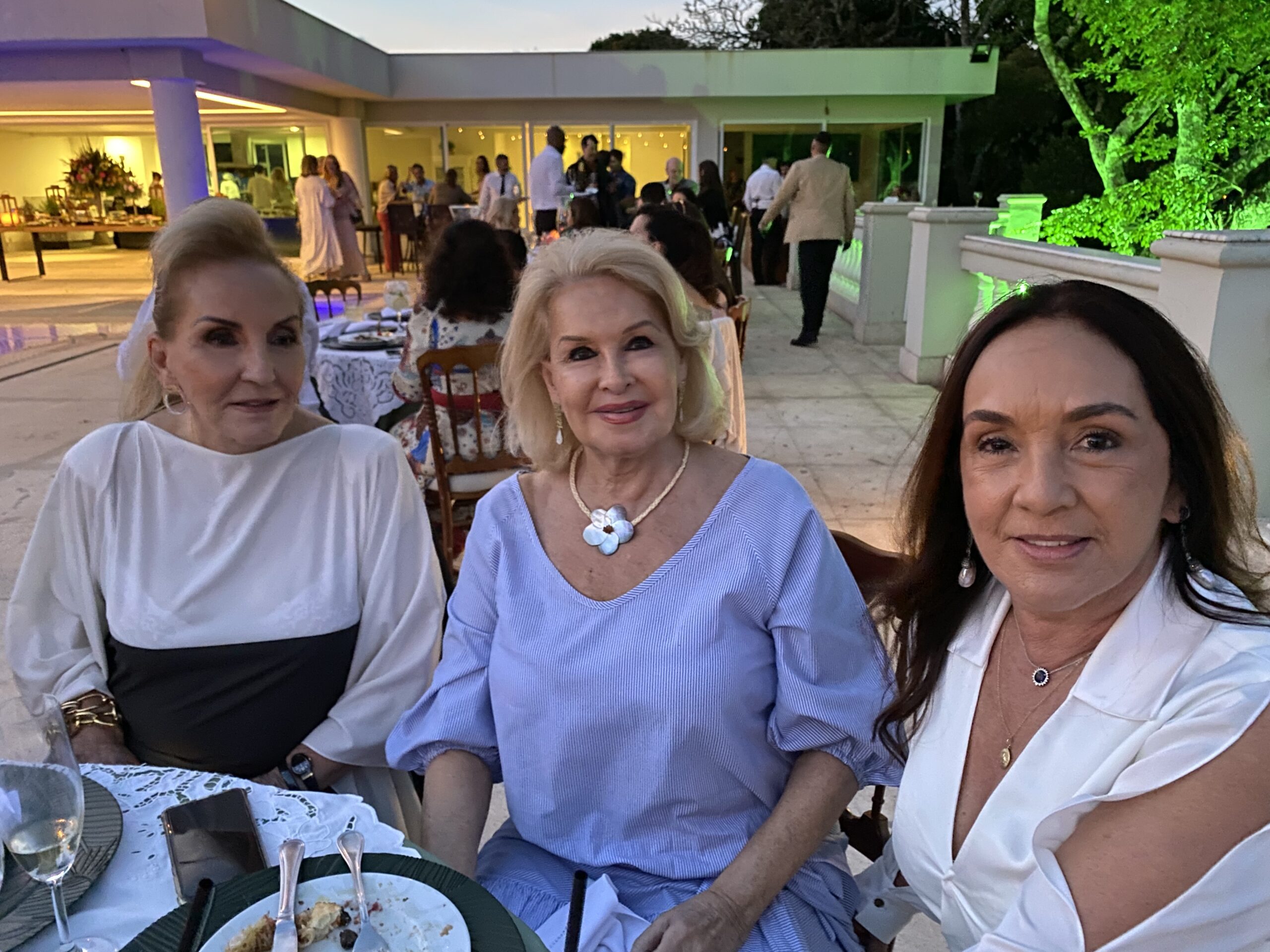 Marta Maria de Castro Batista Ramos não deixou de comemorar seu aniversário deste ano, apesar da data de 2 de Outubro ter caído no domingo do primeiro turno das eleições. Então, transferiu a festa para duas semanas depois, pois Martinha acha que é uma excelente ocasião de rever seus muitos amigos. Foi um sábado de sol, na casa de campo de seu filho Betinho, no Condomínio Miguelão, nas redondezas de Beagá/Nova Lima. Marcou a festa para as 16h quando o sol já está descendo para a linha do belo horizonte que se avista nos jardins da casa e o céu vai tomando tons de rosa, as aves vão cruzando o céu retornando para as árvores em volta do pátio, onde foram colocadas as mesas, e este cenário encantou seus convidados, que consideraram a tarde maravilhosa e perfeita. A decoração de centenas de rosas e vários tipos de flôres, formando enormes arranjos multicoloridos em jarros de cristal combinando com a imponência da casa estilo aristocrático inglês. Aliás, o vestido da anfitriã combinava com o estilo inglês, pois o encomendou direto da Inglaterra da premiada estilista britânica Jenny Packham, responsável pelo guarda-roupa da série Bridgerton, um modelo fin-desiècle num tom de azul pastel. O jantar foi servido assim que a noite chegou, o bar de drinques funcionou todo o tempo, e a banda do cantor João Mariz animou a festa com um repertório de músicas consagradas, principalmente sertanejas, o que levou os convidados para a pista de dança. Os vinhos servidos (alguns premiados) foram todos os produzidos pela família da Martinha, nos vinhedos chilenos de seu cunhado Juan Coderch e sua irmã Cecilia Batista Coderch. As presenças podem ser conferidas nas fotos.