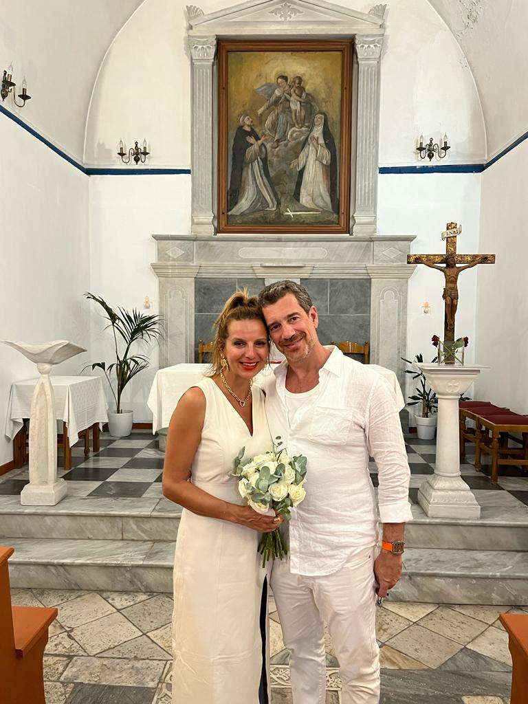 Patrícia, filha de Eva Trierveiler e José Vicente Nascimento, e Adriano, filho do saudoso Fernando Varella com sua primeira esposa, Maria Ester, se casaram na Grécia.