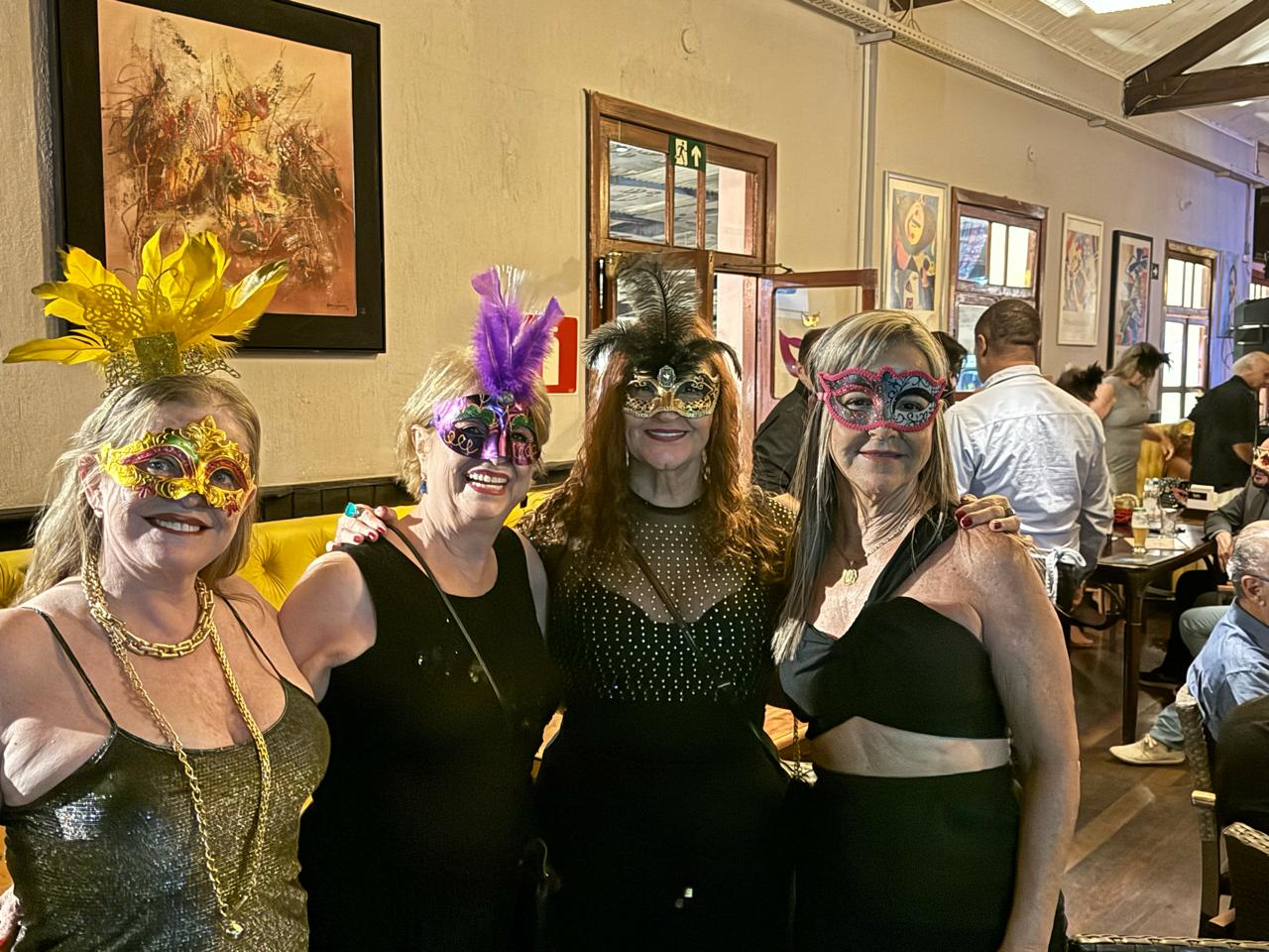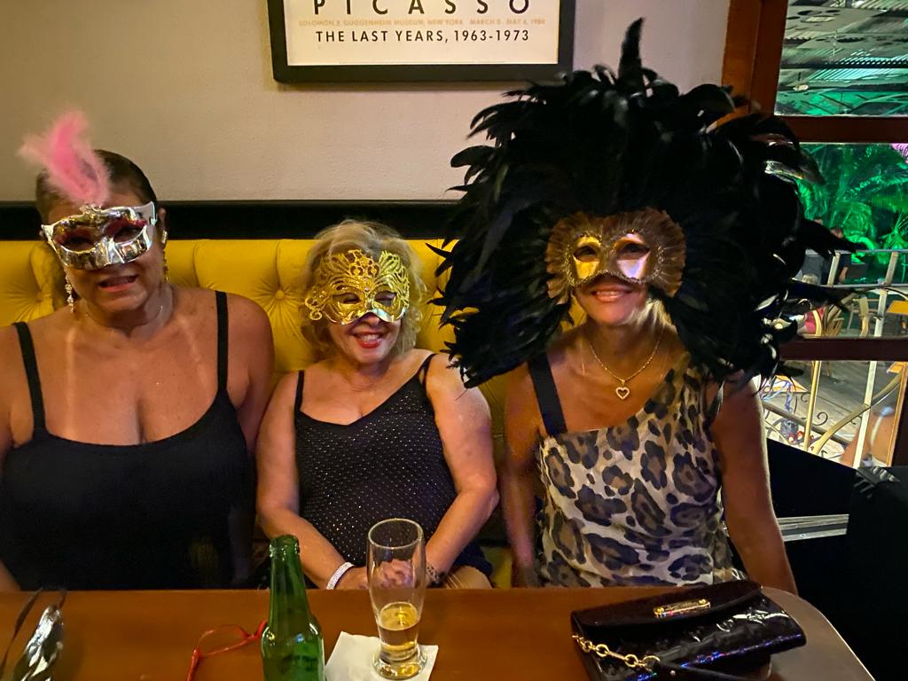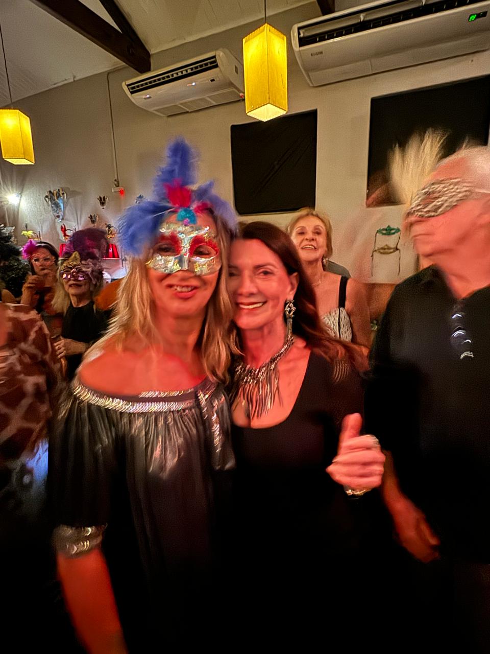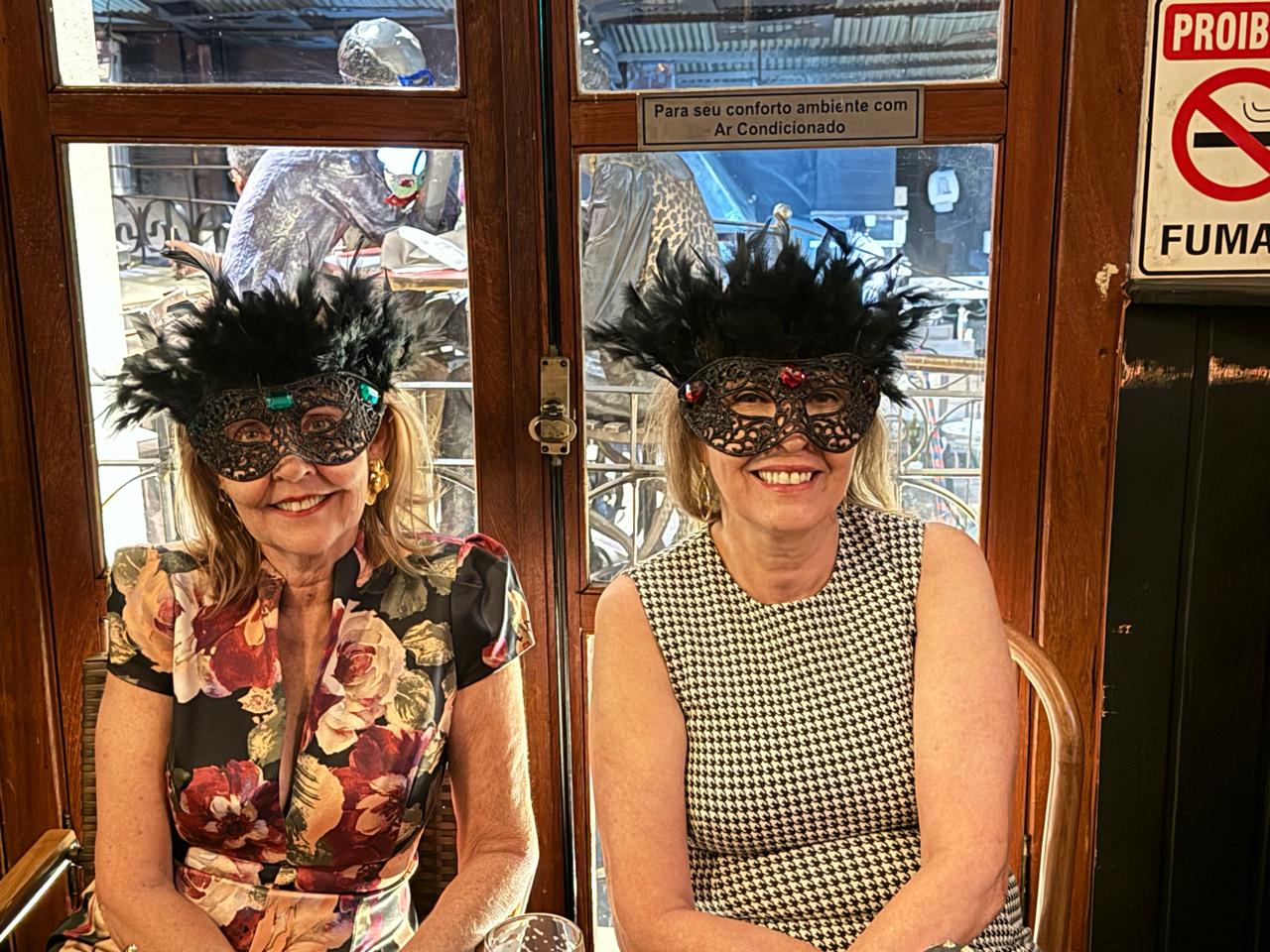 As mulheres aderiram ao uso de máscaras luxuosas que deram um visual de gala em uma noite especial de pré-carnaval.