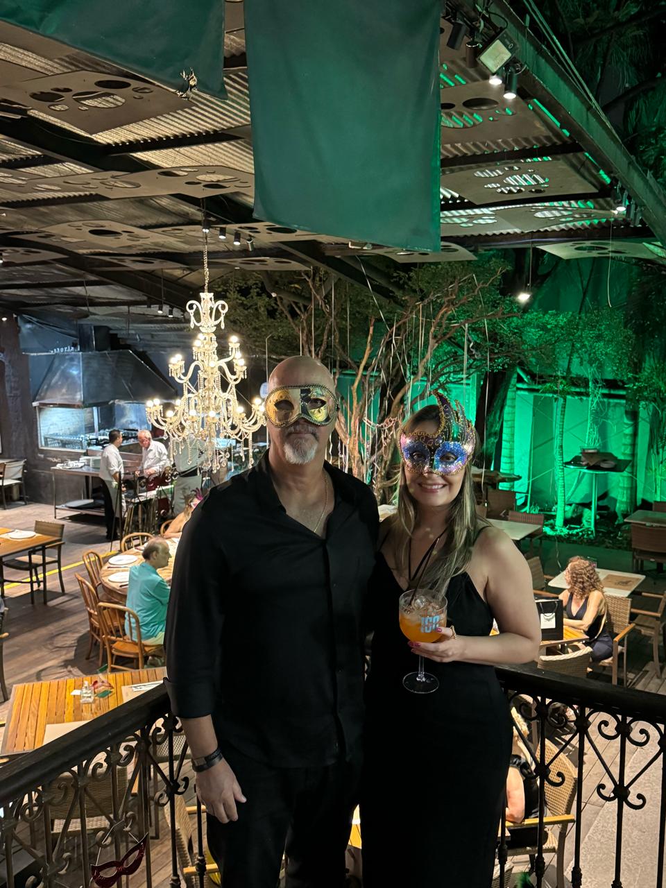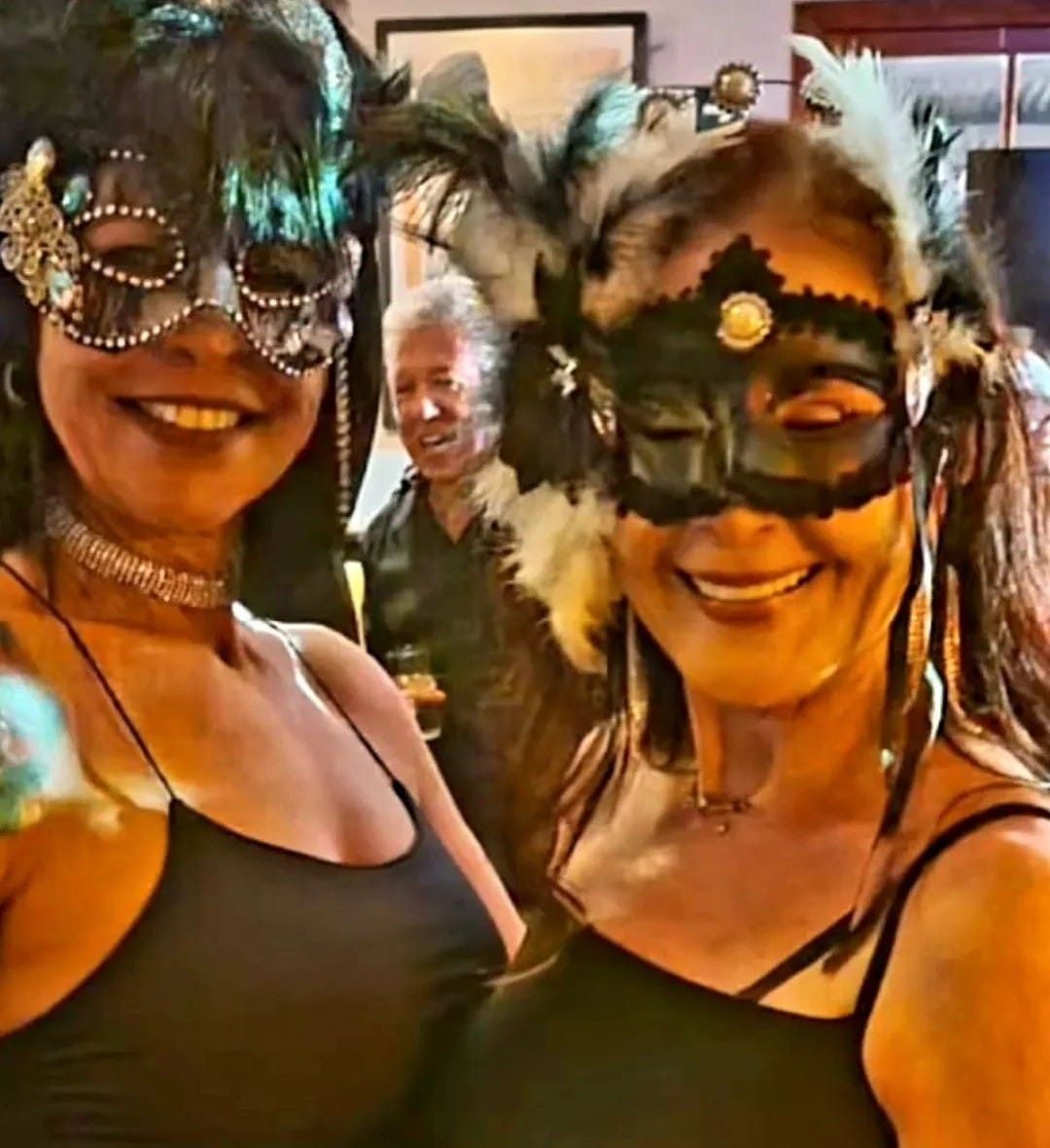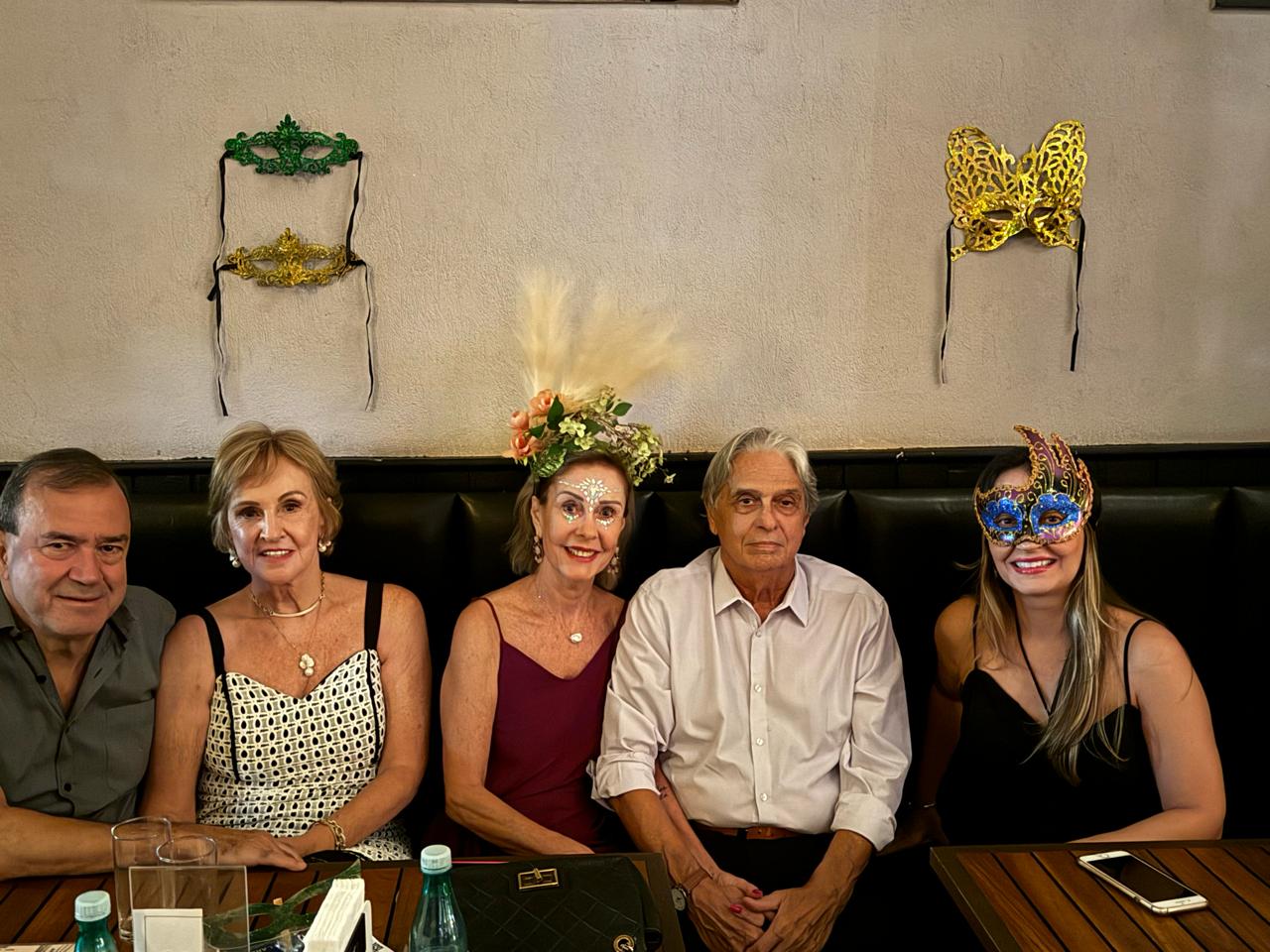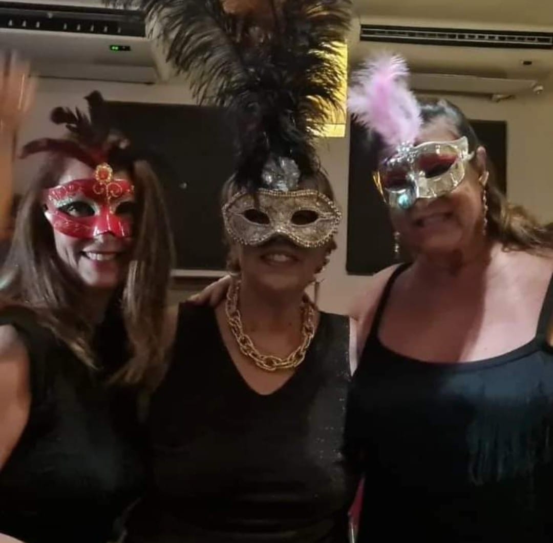 As mulheres aderiram ao uso de máscaras luxuosas que deram um visual de gala em uma noite especial de pré-carnaval.