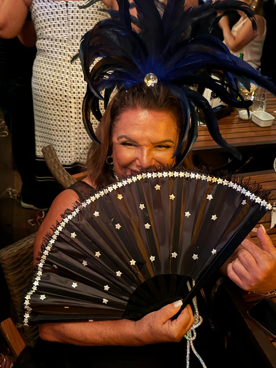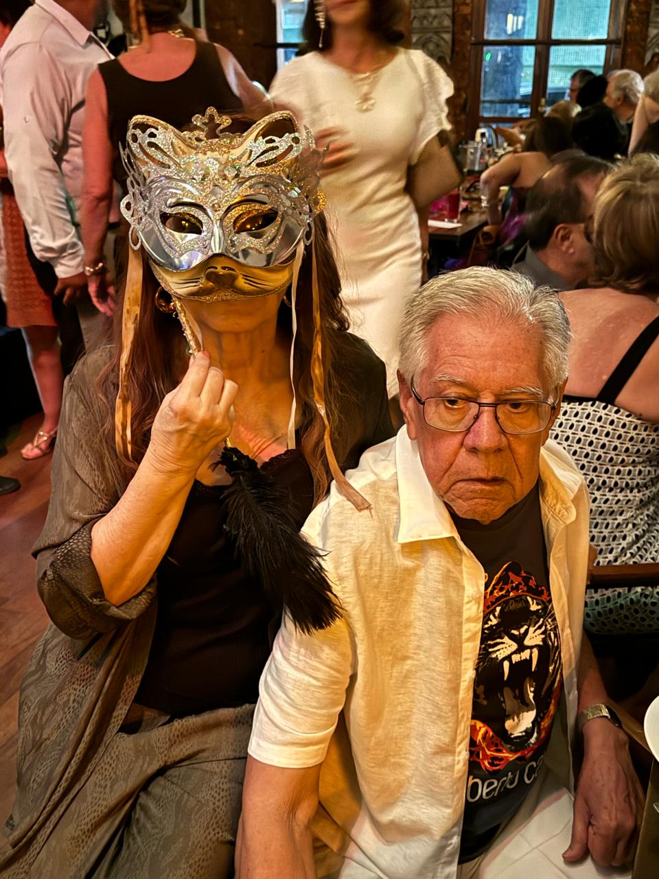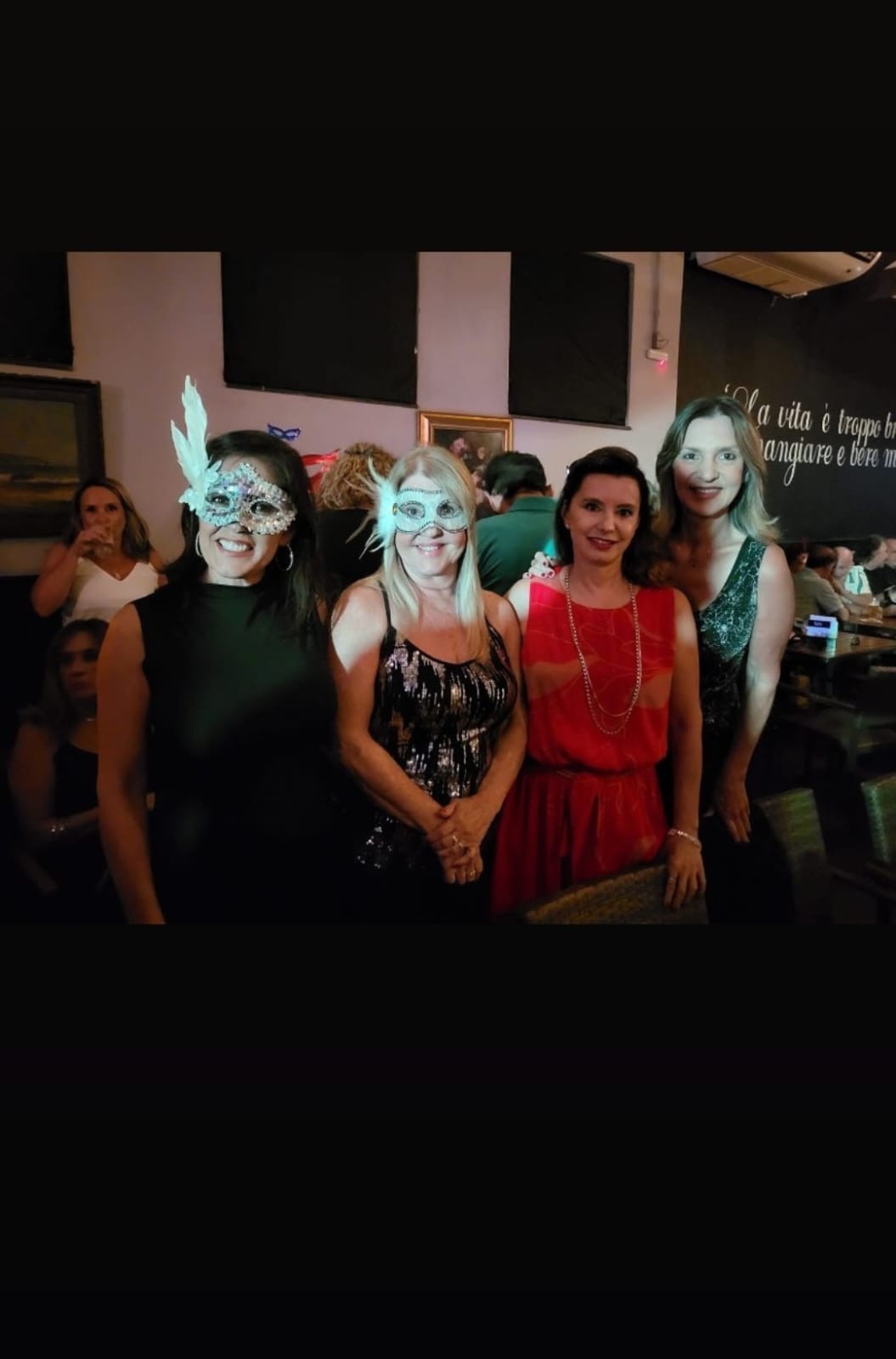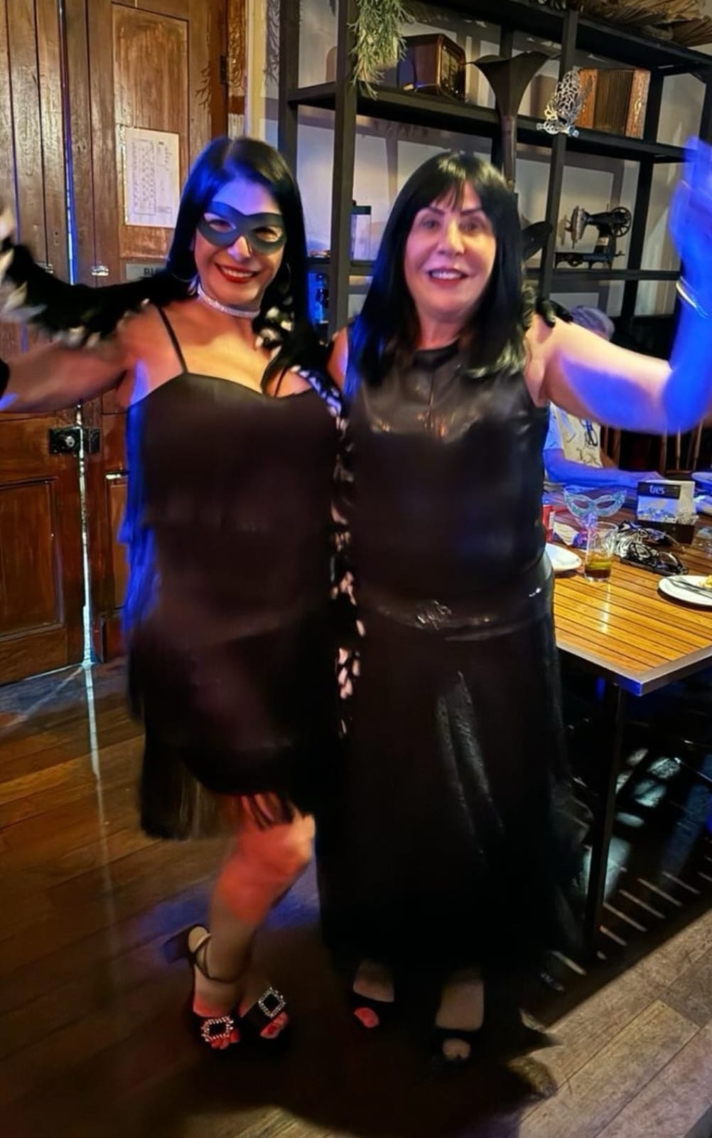 As mulheres aderiram ao uso de máscaras luxuosas que deram um visual de gala em uma noite especial de pré-carnaval.
