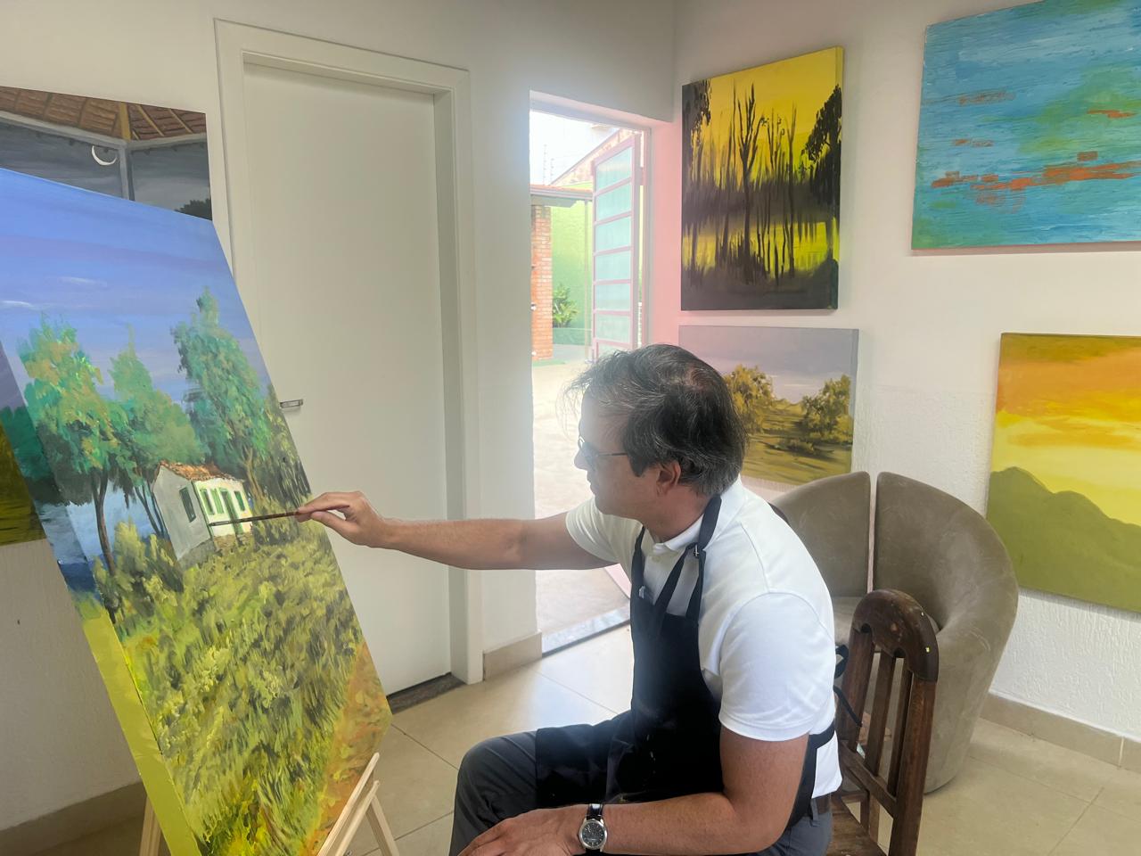 Atelier de Hélcio Augusto no Belvedere. O trabalho do pintor Hélcio Augusto é todo inspirado nas cores do interior de Minas e com algumas influências do Impressionismo.