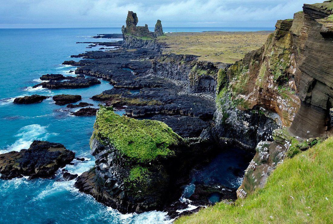 Chegando à costa oeste, terra das falésias à beira do mar profundamente azul, depara-se com os deslumbrantes cenários cinematográficos de “Game of Thrones” e de muitos outros filmes e séries. A península de Snaefellnes foi classificada como o destino mais bonito da Europa pelo Luxury Travel Guide. Antes de voltar à capital é obrigatório tirar fotos na belíssima cachoeira Kirkjufellsfoss e subir até a cratera Saxhóll para apreciar a vista espetacular.